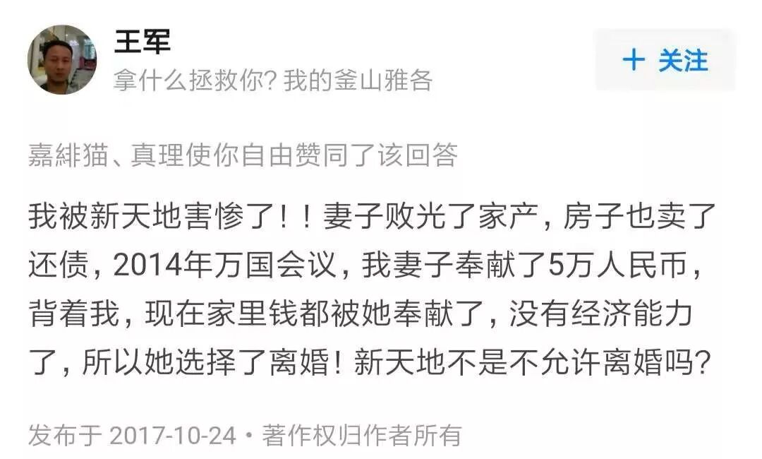 对“新天地”的危害,无邪君将继续跟踪,并予以揭露。欢迎网友到微信后台回复关键词“举报”,提供“新天地教会”及其成员涉嫌违法犯罪的线索。
